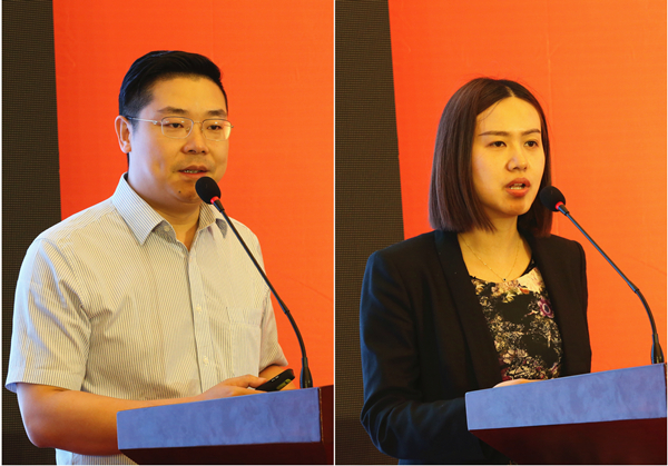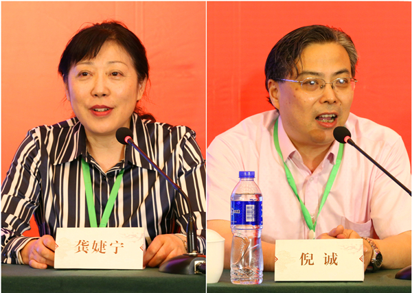 《中医四时养生学》教材主编、南京中医药大学龚婕宁教授(图左),《中医体质养生学》教材主编、北京中医药大学倪诚教授(图右)作为主编代表发言
