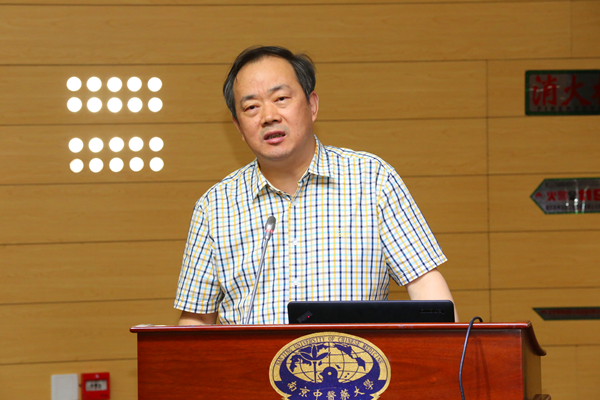 南京中医药大学程革副校长首先代表学校向与会人员表示欢迎,并承诺将为本次会议顺利召开提供全力保障和支持。随后,江苏省中医药局朱岷局长简要介绍了江苏省中医药事业发展现状。项目评估专家组组长果德安教授分析了中药标准化项目推进过程中出现的一些共性问题。