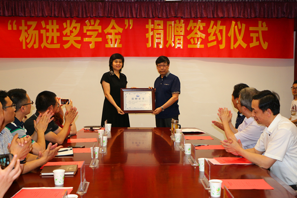 基础医学院战丽彬院长向杨进教授颁发捐赠证书