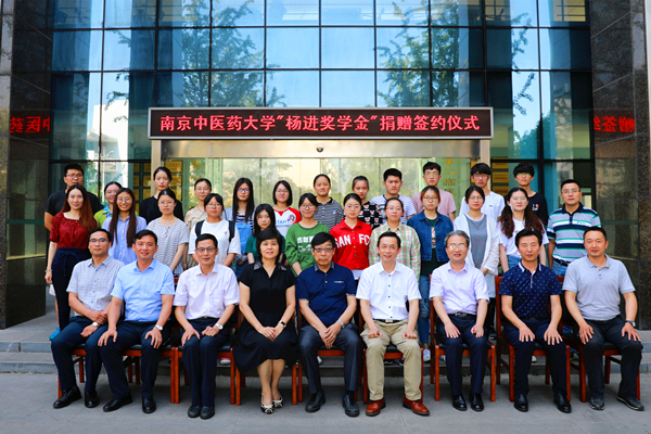 2018年6月12日下午,南京中医药大学“杨进奖学金”捐赠签约仪式在仙林校区丰盛健康楼102会议室举行。国家教学名师杨进,南京中医药大学副校长孙志广,教育发展基金会秘书长曹凯、副秘书长蒋龙魁,学生工作处副处长王治世,基础医学院院领导唐德才、战丽彬、孙新新、张洪兵、王明强,杨进工作室成员,基础医学院全体辅导员、学业指导教师代表及获奖学生代表出席捐赠签约仪式。仪式由基础医学院党委书记唐德才主持。