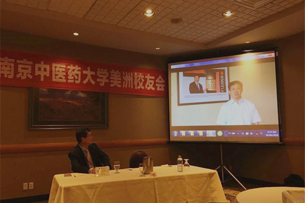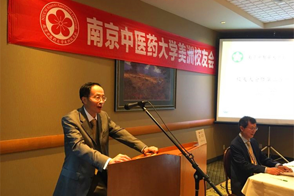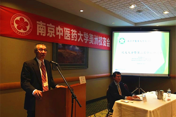 南京中医药大学胡刚校长向美洲校友会第二届校友大会传达母校祝福