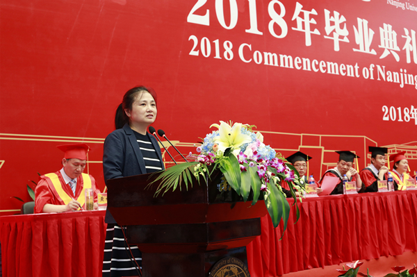 “毕业不是庆祝结束,而是欢呼开始,不是纪念完成,而是宣布进步”,医学与生命科学学院詹秀琴教授作为教师代表作了真挚深情的发言,她代表全体教师,希望同学们在“自我”和“非我”之间寻求平衡,以自由的灵魂、求真的精神、创造的激情和实干的精神超越自我,成为南中医明天的骄傲。