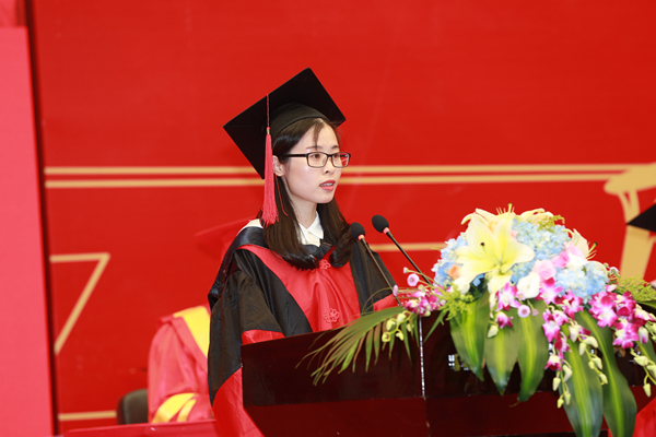 本科生代表、药学院刘莲同学,留学生代表、国际教育学院葡萄牙籍硕士研究生姚灵同学,研究生代表、博士研究生林丽丽同学分别作了感人肺腑的发言。她们回忆了南中医生活学习的点点滴滴,倾诉了对羊山湖水的不舍情愫,对药苑格桑的深深眷恋,立誓继续秉承“团结奋进,继承创新”的校风,恪守“自信、敬业”的校训,不断追求卓越,为中医药事业不懈奋斗,为人类健康不断造福,将中国医药传遍全球。