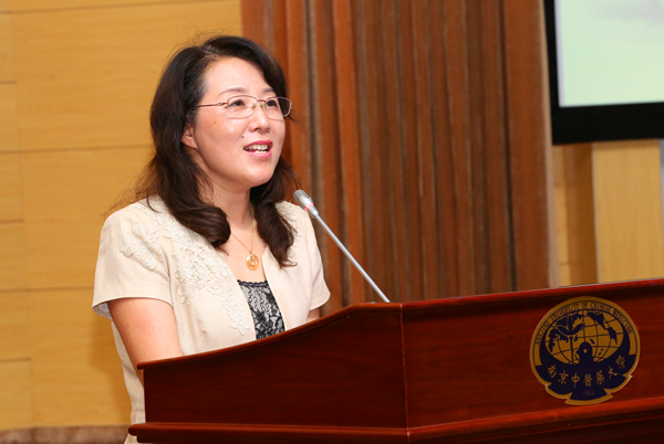 南京中医药大学副校长徐桂华教授在开学典礼上致辞。徐桂华副校长向学员们介绍了我校的发展历程,以及建设世界一流中医药大学的愿景。她指出,在“健康中国”建设背景下,“双一流”建设为中医药的跨越式发展带来了新的机遇,也带来了前所未有的挑战。学校围绕系统生物学与中医药的密切关系,整合原有教学课程体系,打破学科壁垒,打造融通中西的卓越课程,形成暑期学校主干精品课程。暑期学校将邀请国医大师邹燕勤教授、中国科学院上海药物研究所所长蒋华良院士等专家学者为学员们授业解惑。作为校际间、学科间、学员间交流与沟通的纽带,暑期学校将有效拓宽研究生学术视野、激发创新思维,实现学科优势互补、资源共享。