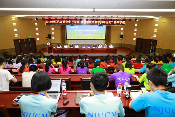 2018年7月10日,由江苏省教育厅立项、南京中医药大学承办的江苏省研究生“探索•发现——系统生物学与中医药”暑期学校在我校仙林校区丰盛健康楼学术报告厅举行开学典礼。来自中国中医科学院、澳门科技大学、南京信息工程大学、北京中医药大学、上海中医药大学、广州中医药大学等30余所高校的149名研究生以及台湾慈济大学访问团齐聚我校,进行为期七天的学习交流活动。国医大师邹燕勤教授、台湾慈济大学学士后中医学系主任林宜信教授、南京中医药大学有关学院和单位负责人出席开学典礼。研究生院院长张旭教授主持开学典礼。