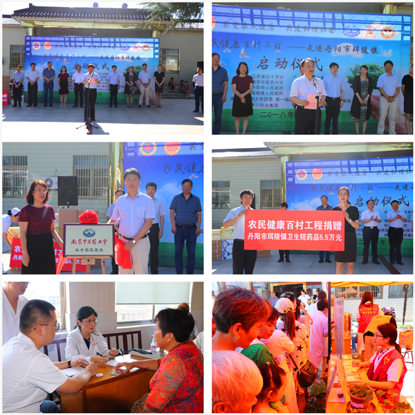 2018年7月13至14日,由江苏省红十字会、共青团江苏省委《风流一代》杂志社、《农民日报》江苏记者站和南京中医药大学联合发起的“农民健康百村工程”,走进镇江丹阳市珥陵镇开展医疗卫生志愿服务活动。江苏省红十字会党组成员、副会长徐国林,南京中医药大学党委常委、副校长黄桂成,丹阳市委常委、副市长孙沪兵、副市长贺云华以及校、地相关部门负责同志和南京中医药大学及第一附属医院专家、青年志愿者参加活动。
