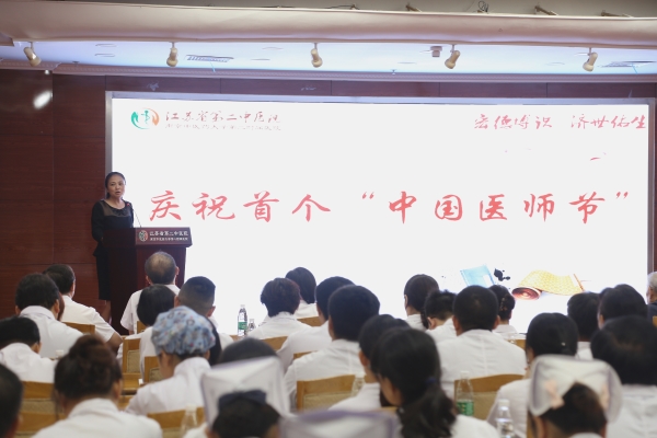 8月19日,我国迎来首个“中国医师节”,这是继护士节、教师节、记者节之后,国家设立的第四个行业性节日。为进一步弘扬广大卫生与健康工作者“敬佑生命、救死扶伤、甘于奉献、大爱无疆”的崇高精神,我校第二附属医院于8月19日在医院学术报告厅举行首届“中国医师节”庆祝大会。中国工程院院士、南京军区南京总医院副院长黎介寿,省卫生计生委副主任、省中医药局局长朱岷应邀出席大会。校党委书记陈涤平教授、全国名老中医王灿晖教授向大会发来视频祝福。庆祝大会由医院党委书记王红云主持, 殷立平副院长致辞。