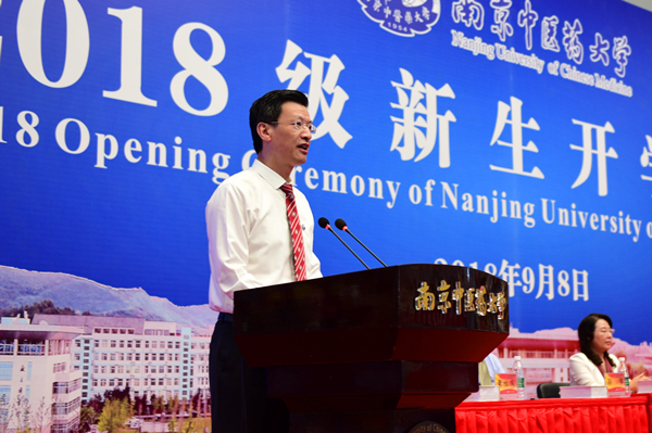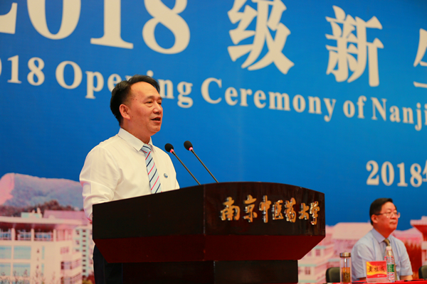 南京中医药大学党委常委、副校长黄桂成教授主持开学典礼