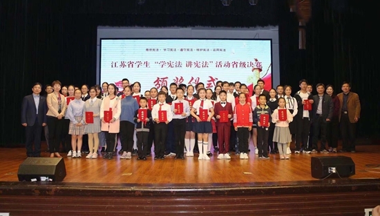 10月21日,由省教育厅主办、江苏教育报刊总社承办、南京中医药大学协办的全省学生“学宪法讲宪法”活动省级决赛圆满结束。经各设区市选拔推荐的小学组、初中组、高中组(含中等职业学校)39名选手,3 个高校片区选拔推荐的18名选手参加现场总决赛。来自扬州市梅岭小学西区校的陈鹏宇、扬州市田家炳实验中学的朱星羽、江苏省南通中学的吴雨遥、苏州科技大学的刘子衿分获小学组、初中组、高中组、高校组特等奖。省教育厅副厅长曹玉梅出席颁奖仪式并讲话,我校党委副书记、副校长张策华参加了颁奖仪式。