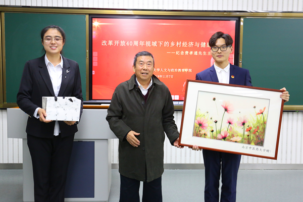 为更好地弘扬费孝通先生高尚的品格、无私奉献的精神,我校学生工作处举办了 “改革开放40周年视域下的乡村经济与健康中国”——纪念费孝通先生主题班会,邀请人文与政治教育学院王小丁副院长分享前往费老家乡调研感想与获奖心得,重温费老名言警句,用实际行动践行费老“各美其美、美人之美、美美与共、天下大同”的理念。张荣华主任和陈国钧理事长与同学们进行亲切的交流。