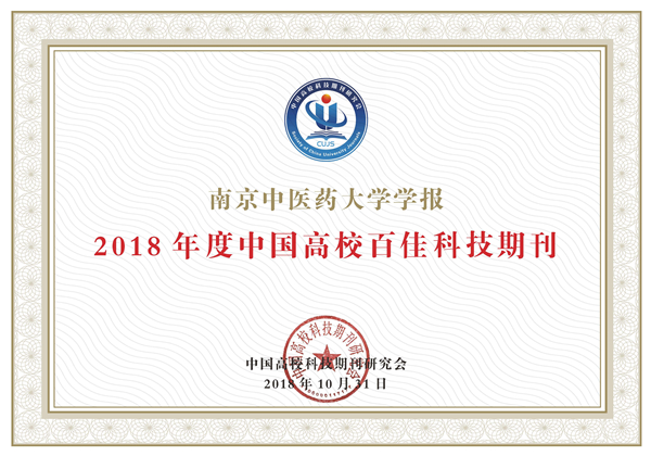 《南京中医药大学学报》入选中国高校百佳科技期刊