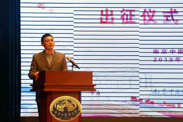 乔学斌副校长为参加优秀学子母校行活动的志愿者作动员讲话。他指出,优秀学子母校行活动有重要意义,不仅为同学们搭建实践锻炼平台,还为中学师生搭建起认识南中医和了解大学生活的桥梁。他从三个方面为即将启程的志愿者提供建议:一是要增强自豪感,中医药的发展处在重大战略机遇期,中医药的魅力和价值一定会进一步得到彰显。近年来,学校发展驶入快车道,各项事业取得新突破。无论是中医药和学校的发展都进入大有可为的新时代,同学们要树立自豪感和自信心,宣传好中医药,宣传好南中医。二是要增强荣誉感,乔学斌副校长认为,优秀学子母校行志愿者是经过层层选拔,从出征之时起,就代表了南中医的形象,他勉励同学们要做好策划,树立好形象,通过积极的宣传,让更多具有中医药培养潜质的优秀学子来到南京中医药大学。三是要增强责任感,乔学斌副校长希望同学们能将课堂所学转化为社会所需,坚持知行合一,勇敢担当起属于新时代青年的社会责任,践行志愿精神,肩负起传播中医药文化,宣传南京中医药大学的重任。乔学斌副校长最后强调,我校第三次党代会刚刚落下帷幕,在这个承前启后、继往开来的新时代,广大优秀青年学子要积极投身到学习贯彻学校第三次党代会的热潮中去,不忘初心、牢记使命,进一步加强内涵建设,不断提升人才培养质量,更好地彰显学校的特色,更好地追求学校的卓越发展,为“健康中国”和“健康江苏”做出更大的贡献。
