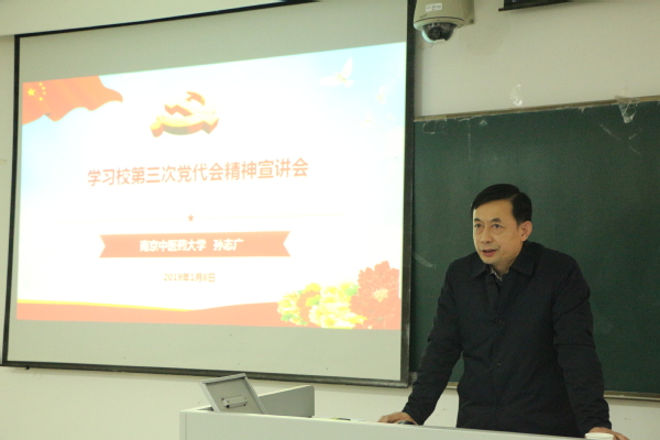 为深入学习贯彻学校第三次党代会精神,进一步统一思想和行动,促进学院各项事业更高更快地发展,2019年1月9日下午,校党委常委、副校长孙志广为基础医学院、外国语学院、国际教育学院、台港澳教育中心的全体教职工作了“学习校第三次党代会精神”专题辅导报告。两院全体党政领导及180名教职工参加了报告会。报告会由基础医学院唐德才书记主持。