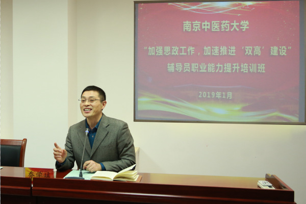 1月20日是本学期最后一个工作日,胡刚校长前往培训班看望一年来坚守在学工一线的全体辅导员,并为大家做了主题为“贯彻落实学校第三次党代会精神,开拓南中医学生工作高质量发展的新局面”的首场报告。胡校长指出,南京中医药大学第三次党代会为新时代学校高质量发展描绘了宏伟蓝图,学校高质量发展要围绕“建设高水平、有特色、国际化的一流中医药大学”这个目标来实现,努力建设“强富美高”的新南中医。胡校长表示,高质量的学生工作是学校高质量发展的重要组成部分,学工队伍是学校“双高”建设的主力军,为学校事业发展做出了重要贡献。结合学校一流本科教育要求,胡校长对学工队伍提出了三点要求:一是对标一流,追求卓越,学工队伍要在规范工作、保质保量完成各项任务的基础上,自觉对标一流中医药大学建设,思想再解放,改革再深入,举措再扎实,追求卓越,建设一支与“双一流”高校相适应的学生工作队伍,努力使学生工作体现“双一流”气势;二是承得起重,担当有为,在学校高质量发展进程中,学工队伍重任在肩,辅导员要始终坚持立德树人根本任务,在学生入学前、在校期间、毕业后等各个环节强化责任担当,以学生成长成才为中心,围绕学生、关照学生、服务学生,以有作为的工作业绩,实现南京中医药大学的高质量发展;三是增强本领,再塑形象,学工队伍要站在思想政治工作的第一线,要进一步解放思想、加强学习、增强本领,从形式到内涵、从指标参数到人才培养全面质量提高方面,都要更加注重实效,更加开拓创新,在新阶段准确理解学校发展的新战略,把握新方位,落实新要求,练就硬本领,切实开拓南中医学生工作高质量发展的新局面。