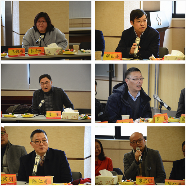 校民革副主委彭计红,民盟主委、省政协委员胡孔法,民进主委、栖霞区人大常委陈军,农工党副主委许立,致公党主委、省政协委员陈仁寿,九三学社主委张宗明,校侨联主席蔡宝昌,知联会会长、省政协常委张旭,省文史馆员蔡知新,省政协常委、一附院肛肠科副主任史仁杰,已退休党外人士代表郁觉初、王旭东分别发言。大家在为学校事业发展建言献策的同时,也为学校2018年所取得的成绩和进步欢欣鼓舞。王九龙部长感谢大家对学校统战工作的支持,并表示,新的一年统战部将坚决贯彻中央和学校党委关于统战工作的指导精神,积极开展各项工作,将一如既往为大家做好服务工作。