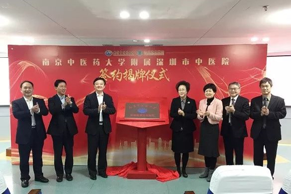 深圳市副市长吴以环与南京中医药大学党委书记程纯为“南京中医药大学附属深圳市中医院”揭牌