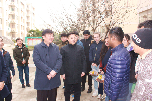 程纯书记、程海波副校长亲切慰问留校的国内外学生