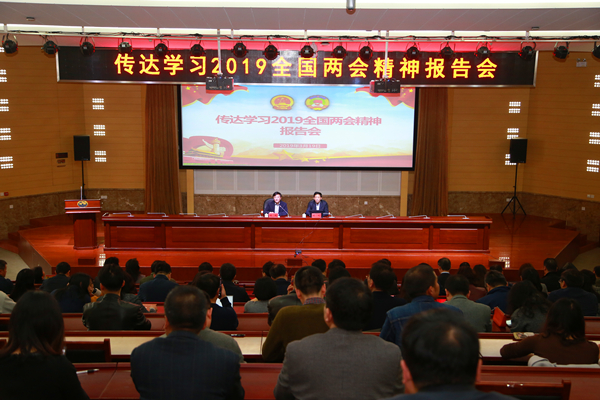 胡刚校长在报告中指出,刚刚胜利闭幕的十三届全国人大二次会议和全国政协十三届二次会议是在全面建成小康社会、实现第一个百年奋斗目标的关键之年召开的十分重要的会议,对全面贯彻落实习近平新时代中国特色社会主义思想和党的十九大精神,鼓舞和动员全国各族人民更加紧密团结在以习近平同志为核心的党中央周围,同心同德、步调一致做好今年工作,为全面建成小康社会打下决定性基础,以优异成绩庆祝新中国成立70周年具有重大意义。习近平总书记发表的重要讲话和两会精神具有丰富的科学内涵,我们要深刻领会,作为做好工作的总遵循。