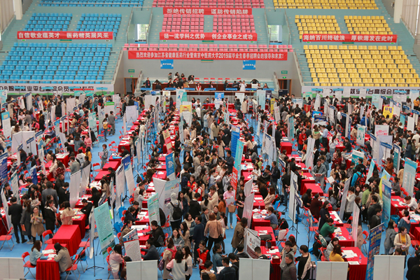 4月12日下午,江苏省健康医药行业暨南京中医药大学2019届毕业生春季招聘会在我校仙林校区体育馆举行。此次招聘会由江苏省高校招生就业指导服务中心和南京中医药大学联合举办,共吸引来自全国255家用人单位、校内外3000余名毕业生参加。校、院两级就业创业工作指导委员会成员亲临现场指导。