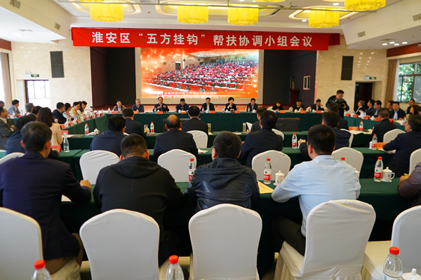 2019年5月6日,省委驻淮安市淮安区帮扶工作队队长单位省国土资源厅牵头召开淮安区“五方挂钩”帮扶协调工作。省自然资源厅厅长刘聪,省扶贫办副主任赵海峰,省自然资源厅党组书记、副厅长孔海燕,淮安市委副书记、统战部部长戚寿余等领导出席会议。南京中医药大学党委组织部副部长倪昊翔在会上就帮扶工作经验作重点交流发言。