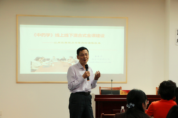 基础医学院党委书记、首批江苏省“金课”建设平台推进计划《线上线下混合式<中药学>金课建设》主持人唐德才教授作专题报告