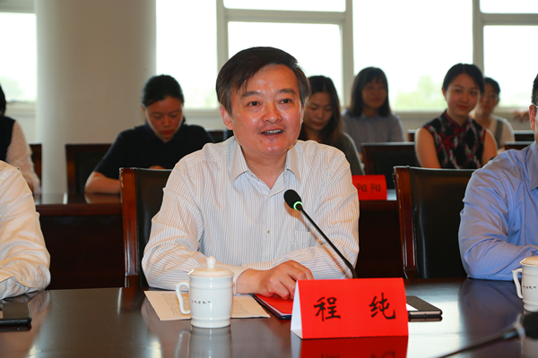 程纯书记首先代表学校对课题立项表示祝贺,对专家们亲临指导表示欢迎和感谢。程纯书记指出,南京中医药大学始终坚持“仁德、仁术、仁人”的教育理念,坚持立德树人、以文化人,注重中医特色的人文社科建设,取得诸多成绩,学校在学科建设、科学研究、人才培养方面都很好地传承了中医特色的中华文化优良传统。程纯书记指出,学校入选国家“双一流”和江苏高水平大学建设高校以来,更加注重人文社科方面的建设,张宗明教授主持项目是我校获得的第三个国家社科重大项目,项目选题非常好,强调中医药文化国际传播认同,有着非常重要的价值。学校开展中医药文化国际传播认同体系研究,推动中医药走向世界,在国际上用中医药这个平台讲好中国故事,传播好中国声音,有着非常重大的意义。程纯书记要求项目组充分利用这次论证会的机会,进一步深化项目设计,拓展研究视野,产出高水平研究成果,为学校学科建设、为中医药文化更好走向世界做出应有的贡献。