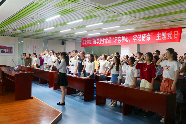 6月14日下午,药学院党委2019届毕业生党员“不忘初心、牢记使命”主题教育在图书馆305会议室举行。学院领导狄留庆、胡立宏、王海波、吕志刚出席活动。学院本科生、研究生党支部书记及全体毕业生党员参加活动。活动由学院组织员谢波主持。