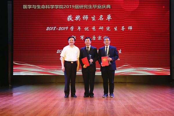 医学与生命科学学院党委王珏书记宣读学院优秀研究生导师和优秀毕业研究生表彰决定。程纯书记、沈旭院长先后为获奖导师和毕业生颁奖。张晓龙代表全体毕业研究生发言,他分享了自己在学院求学期间的收获,表达了对老师们的感谢之情及对学校、学院的真挚祝福。