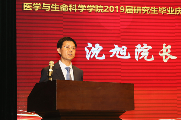 医学与生命科学学院院长沈旭教授向全体毕业研究生表示祝贺,对老师和家长表示感谢。他回顾了全院师生三年来的拼搏进取,总结了学院飞速发展的成果,并对毕业生们取得的各项成绩表示肯定和赞扬。他勉励大家“努力奋斗才能梦想成真”,希望毕业生踏出校门以后谨记“方正博学 格物济世”的院训,不断提升自己、成就自己,不忘初心,常回家看看。