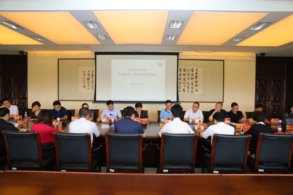 为在我省党外知识分子中深入开展“弘扬爱国奋斗精神、建功立业新时代”活动,引导广大党外知识分子进一步增强文化自信,加强与高校知联会间的交流互动、学习互鉴, 6月29日下午,省知联会专家组一行专程赴我校开展“中医药文化与健康”专题调研。调研由省知联会副会长、省政协社会法制(民族宗教)委员会主任邵建东带队,省委统战部巡视员方未艾与省自然资源厅厅长刘聪、中船重工第八研究院副院长沈桂明、省检察院副检察长汪莉等三位省知联会副会长,以及省知联会各专委会、工委会负责同志、省委统战部部分职能处室的负责同志近20人参加此次调研。