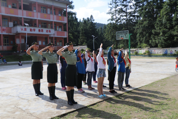 远志服务团的志愿者们精心设计了“红色之情”爱国教育、“四友学堂”艺术体验、应急救护培训等内容新颖、形式多样的暑期课程。为迎接祖国七十华诞,服务团中的两名女子国旗班成员专门为归柳小学培训了一支“小小国旗护卫队”,共同唱响《我和我的祖国》。