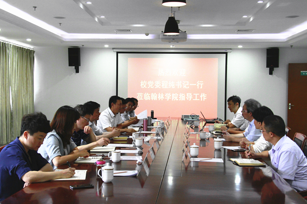 程纯书记一行走访察看了翰林学院图书馆、学生宿舍、实验室、教室、校园监控室、网络机房及学生食堂等,并与翰林学院领导班子成员、全体中层干部交流座谈。