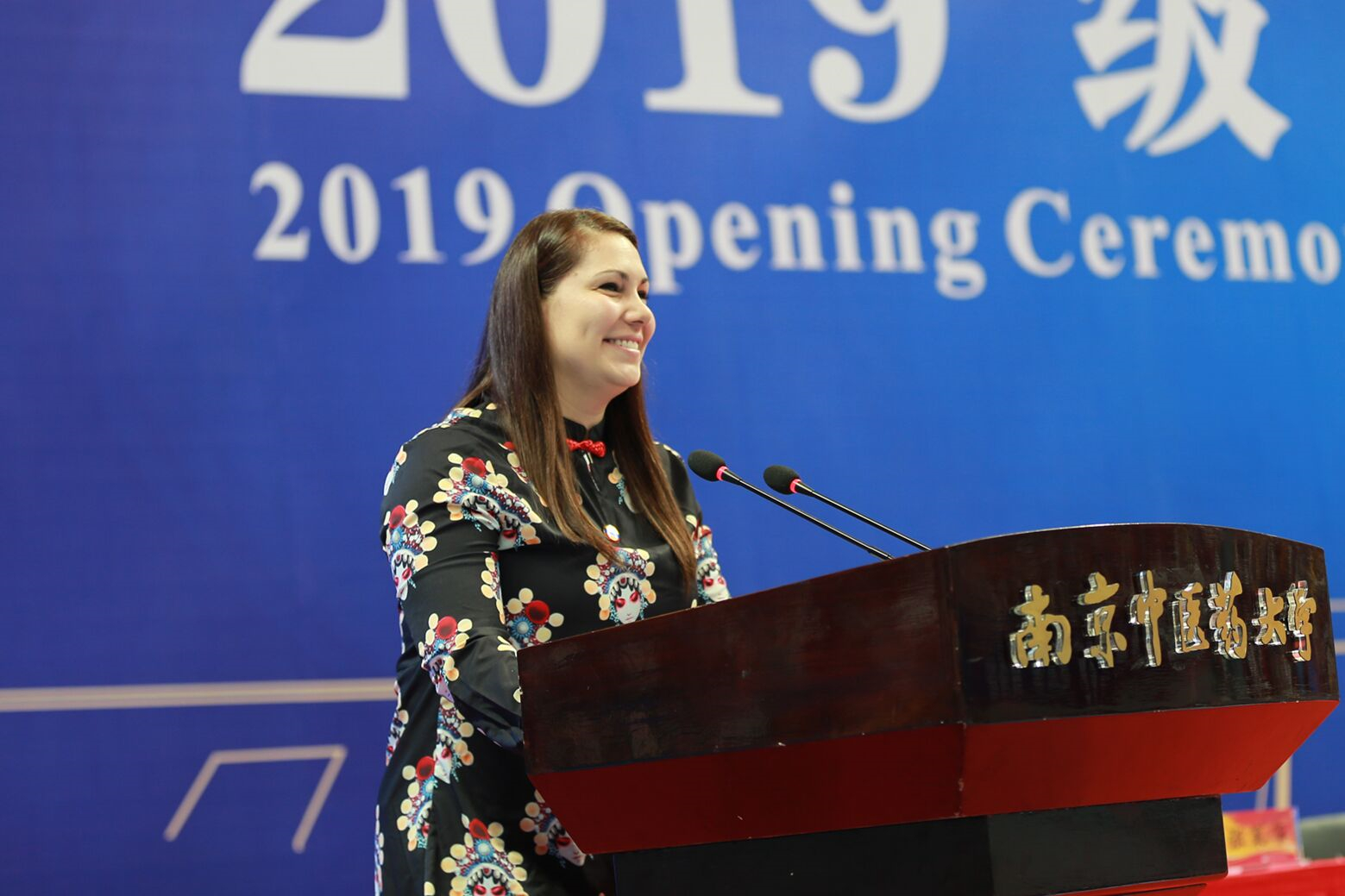 来自马来西亚的硕士研究生徐向盈激动地表示,她在马来西亚的中医启蒙老师就是从南京中医药大学毕业的,经常听老师提及很多关于南京中医药大学的故事。她在老师的极力推荐下,她怀揣系统深入学习中医的梦想来到南京。美丽的校园、热心的同学与老师,让她感觉非常美好。苏美瑞,来自委内瑞拉的博士研究生,受到在南京中医药大学学习9个年头的弟弟苏小海的影响来到中国。苏小海爱好中华武术、能文能武,潜心学习中医药知识。苏美瑞2016年来中国探望弟弟,第一次接触中医便深深爱上了中医,报读了学校的硕士研究生;三年后,由于品学兼优,非常幸运地获得了中国政府全额奖学金,继续留在学校攻读博士学位。9月5日的开学典礼上,苏美瑞代表2019级全体国际新生发言,表达了对学校的热爱和对中国传统医学的认可,感情真挚、言辞幽默,获得现场一阵阵雷鸣般的掌声。国际教育学院也为面向世界各地的各类国际短期班的学生举行了开学典礼。