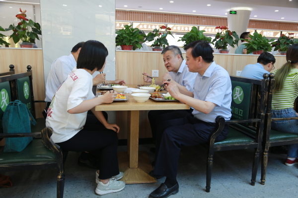 王江副省长在食堂和学生亲切交谈