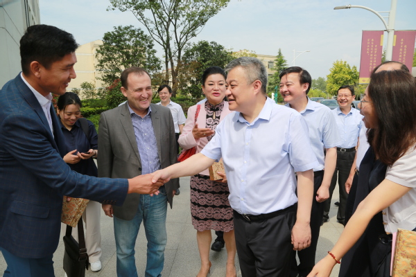 王江副省长一行在学校唐仲英科技楼,实地视察了中药功效物质重点实验室;在国际教育学院,亲切接见了乌兹别克斯坦医疗卫生代表团成员,并与师生进行座谈交流,听取了学校关于境外留学生培养管理情况的汇报,了解留学生学习生活的情况。王江副省长一行还深入到学生食堂,与大学生共进午餐,关切地询问他们在校学习、生活情况,勉励他们珍惜大学光阴,立志报效祖国。