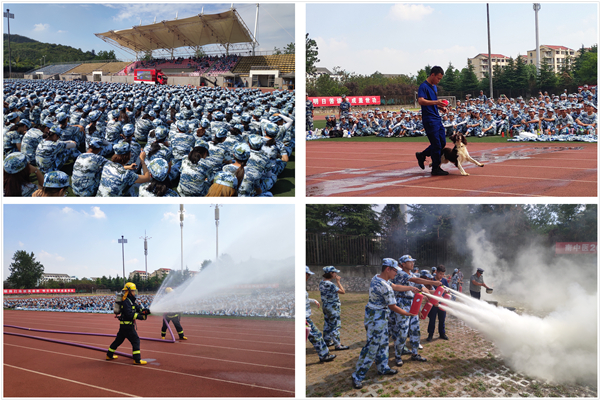 本次活动分消防安全视频宣传、消防救援与搜救犬表演、常用消防器材使用讲解和灭火实战演练四个部分。同学们首先观看了“消防开学第一课”和“灭火器操作使用方法” 警示宣传教育片。随后,消防战士从消防车上接出水带喷水,现场模拟了灭火救援的过程,指导员给同学们讲解了火场的逃生技巧、如何正确拨打火警电话并演示了灭火器的使用方法。搜救犬的表演更是燃起了同学们的热情,可爱的搜救犬在听到训导员的命令后,快速反应、很好的完成了规定动作,出色的表现也赢得了同学们的阵阵掌声和欢呼声。最后,新生们进行了“油盆灭火”实战演练,学以致用,亲身体验如何正确使用灭火器扑救初起火灾。
