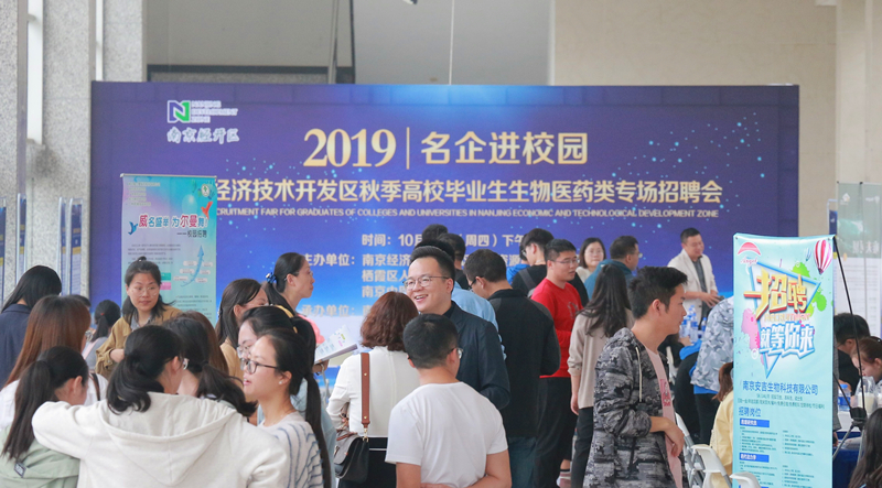 10月10日下午,由南京经济技术开发区人社局、栖霞区人社局和南京中医药大学共同举办的2019“名企进校园”秋季高校毕业生生物医药类专场招聘会在仙林校区大学生活动中心举行。