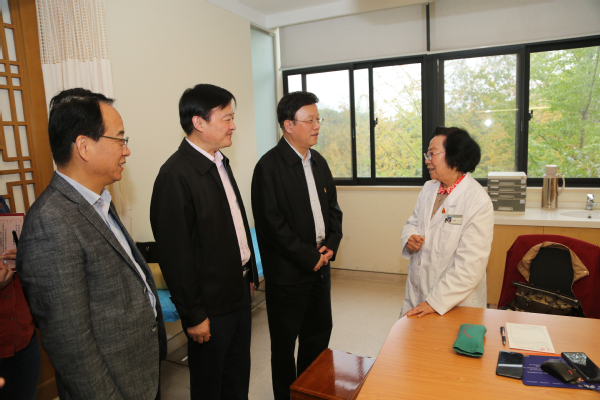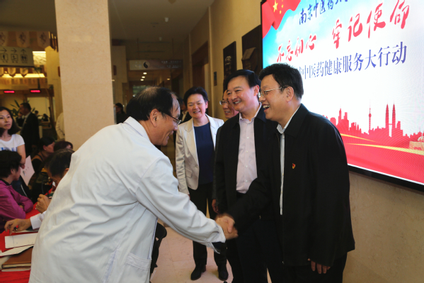 10月22日恰逢“世界传统医药日”,作为我校建校65周年校庆的重要活动之一,学校联合江苏省内26家附属医院和部分教学医院异地同步开展“江苏全域中医药健康服务大行动”,以实际行动践行“弘扬祖国医学,服务人民健康”的责任担当。省委主题教育第七巡回指导组江里程组长一行在校领导的陪同下,亲切看望慰问了参加义诊的国医大师邹燕勤教授等专家。