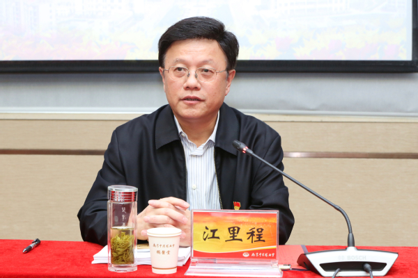 10月22日下午,我校在汉中门校区国医堂五楼会议室召开“不忘初心、牢记使命”主题教育校党政领导班子调研成果交流会。省委主题教育第七巡回指导组组长江里程、指导组成员谭子祥出席会议,并对我校主题教育活动进行指导。校党政领导班子成员、全体中层正职党员领导干部参加会议。会议由校党委书记程纯主持。