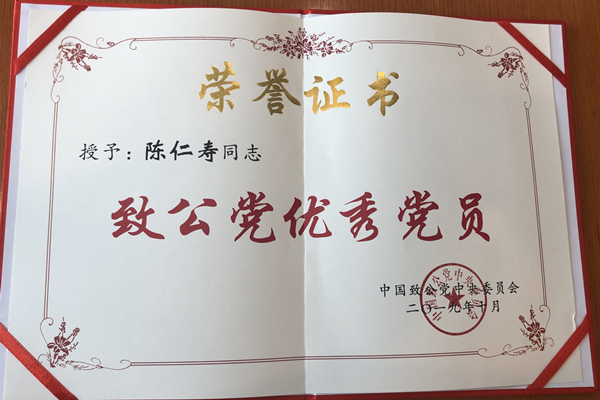 南京中医药大学中医药文献研究所所长、致公党总支主委陈仁寿教授被致公党中央委员会授予“致公党优秀党员”称号