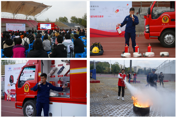 11月6日下午,我校2019年消防安全宣传月活动启动仪式暨首场活动-“平安校园 人人有责”消防体验零距离在仙林校区西操场举行。各学院师生代表、各实验室工作人员参加了本次活动。
