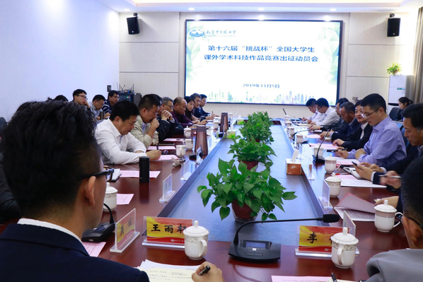 乔学斌副校长简要介绍了我校本届“挑战杯”竞赛组织工作。他认为,本届竞赛启动早,谋划早,在校内竞赛上聚力;广覆盖,配强援,在资源整合上聚集;精培育,出成果,在作品质量上聚焦;熟规则,强服务,在工作落实上聚责。