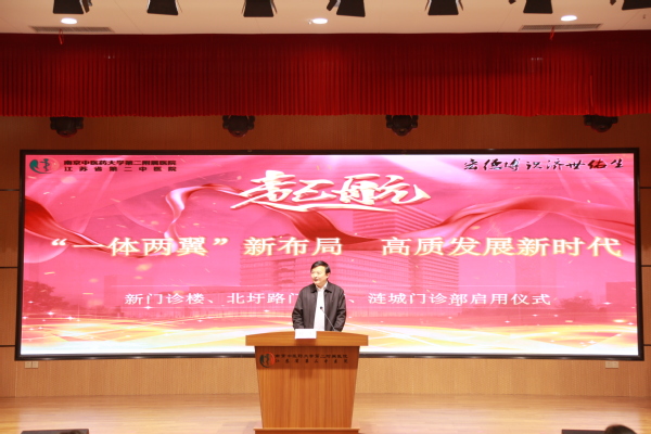 2019年12月9日下午,第二附属医院举行新门诊楼、北圩路门诊部、涟城门诊部启用仪式,校党委书记程纯,省卫生健康委主任谭颖,省卫生健康委副主任、省中医药管理局局长朱岷,建邺区副区长夏晓燕等领导出席启用仪式。