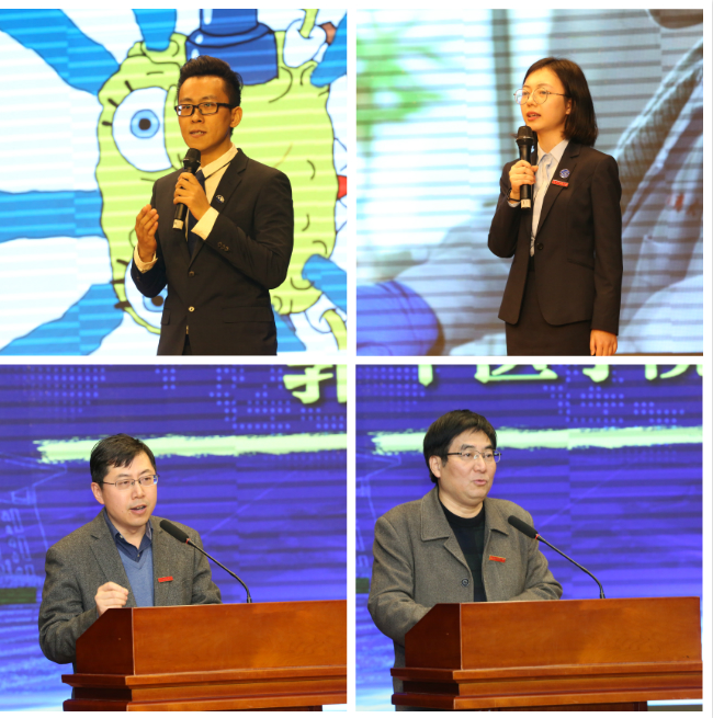 “挑战杯”一等奖获奖团队代表王雨轩、倪子惠分别作了竞赛项目展示和参赛经历分享。“挑战杯”优秀指导教师代表郭军教授、马勇教授分别介绍了“挑战杯”团队指导经验和学院创新创业教育经验做法。