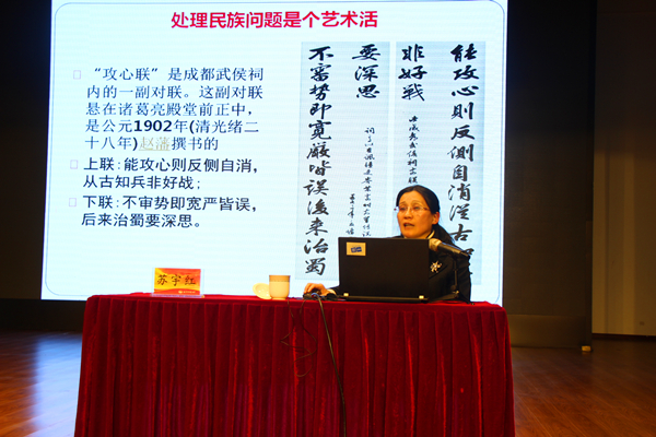 报告会上,苏宇红副部长从民族、宗教以及如何做好高校民族宗教工作三个方面切入,向我校师生深入浅出地解读了党的民族宗教政策。她用翔实的案例剖析了当前我国民族宗教工作面临的问题和严峻形势,结合南京高校的普遍现象以及南京中医药大学的实际情况,为进一步做好民族宗教工作提出宝贵的意见和建议。