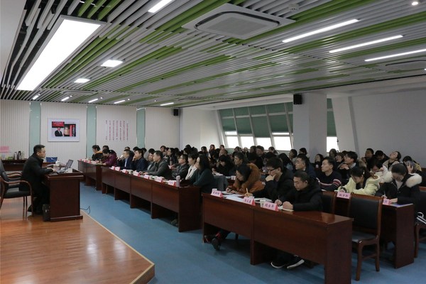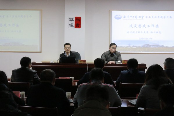 12月19日下午,我校在图书馆305报告厅召开学工系统第六次集体学习会,党的十九大代表、江苏团省委副书记(兼职)、南京航空航天大学马克思主义学院党总支书记徐川教授应邀来我校作题为《诚意正心,以道御术——谈谈思政工作法》的专题讲座。各学院学工书记,全体辅导员,宣传部、学工处、团委全体人员,思政课教师及学业指导老师代表参加会议。会议由校党委常委、宣传部部长、马克思主义学院党总支书记刘晓主持。