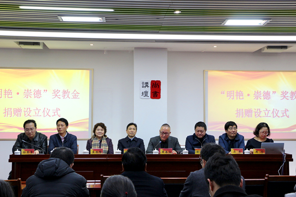 为了进一步落实立德树人根本任务,加强师德师风建设,学习弘扬王明艳精神,12月25日下午,中医学院在图书馆305会议室举行“明艳•崇德”奖教金捐赠设立仪式。校党委副书记、副校长张策华出席仪式并讲话。学校教育发展基金会秘书处负责同志和捐赠方代表南京天佑儿童医院创始人黄春池、院长龚根娣等参加仪式。