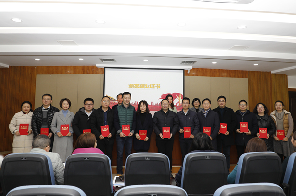 结业仪式上,王珏宣读了《关于表彰2019年拟提拔副处级干部培训班“优秀学员”的决定》,刘丹青等10名学员获得“优秀学员 ”称号。与会领导为培训班学员颁发结业证书。王丽等5名学员就培训班的学习心得体会进行了分享和交流。