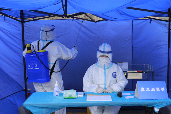 “体温异常者”离开后,校医院专业人员立即对体温复测点和留观点进行现场强化消杀处理。