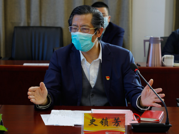 4月28日下午,校党委书记程纯在五四青年节前夕主持召开青年学生座谈会,史锁芳、曹娟两位深入湖北抗疫一线的优秀校友作为特邀嘉宾,与青年学子齐聚一堂,以“让青春在党和人民需要的地方绽放绚丽之花”为主题,畅谈学习习近平总书记给北京大学援鄂医疗队全体“90后”党员回信精神的感悟,共话南中医青年学子的初心、使命和担当。校党委副书记、副校长张策华出席座谈会。